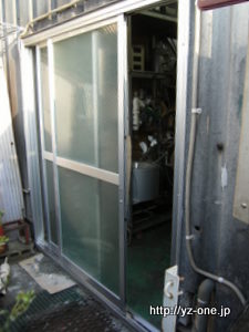 工場の出入りに使っているサッシをカバー工事で交換しました。
