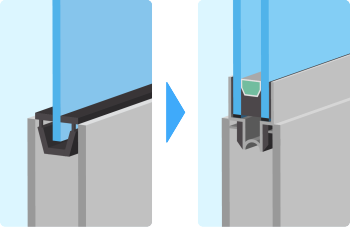 既存窓のガラスのみを取り外し、既存サッシをそのまま利用して複層ガラス等に交換する工事です。 同じガラスであっても、既存サッシとの組み合わせにより窓の性能区分が変わります。